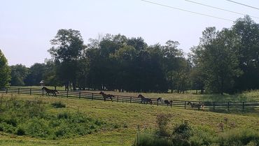 In the above satellite view image, in the middle of the larger track you can see the sacrifice area for the EquiCentral rotation grazing system. This central sacrifice lot has multiple gates that open into different grass sections, which are rotated to carefully manage the health of the land and the forage, and thus, the health of the horses.